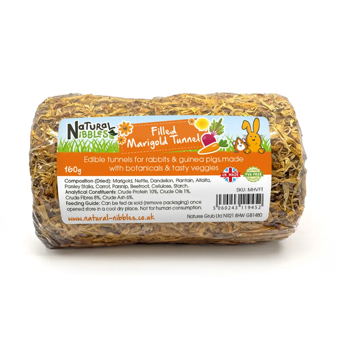 Filled Marigold Tunnel for Rabbits, Guinea Pigs, Natural, Edible Mix